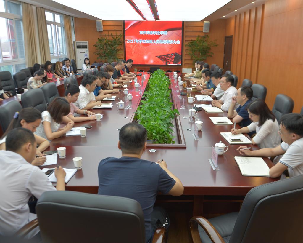 【文/教务处 图/宣传部】6月14日下午,在办公楼第六会议室,召开了2017年学生技能竞赛总结表彰大会,党委书记谭勇、院长冉光学、副院长丁谦,教务处、各二级院系党政负责人、获得第十届学生专业技能竞赛国赛和市赛一、二等奖的指导老师和参赛学生共40余人参加了大会。