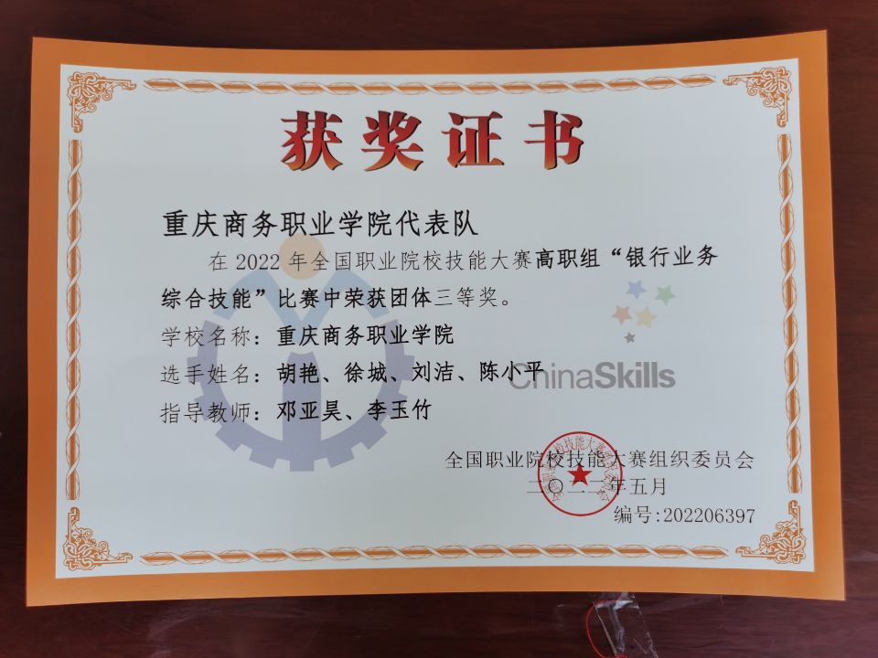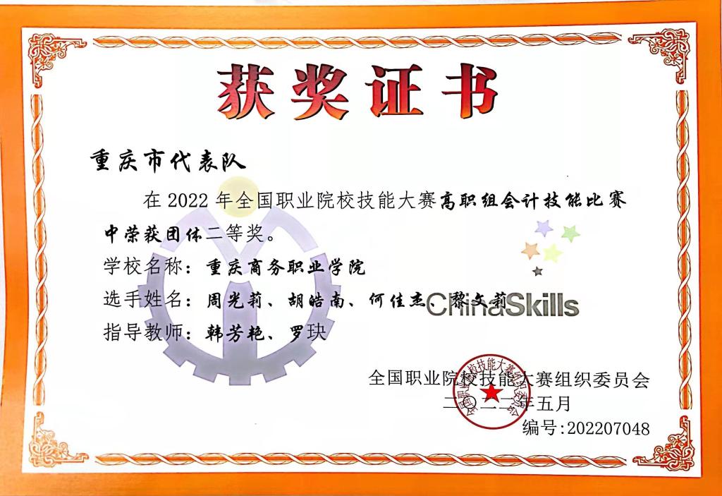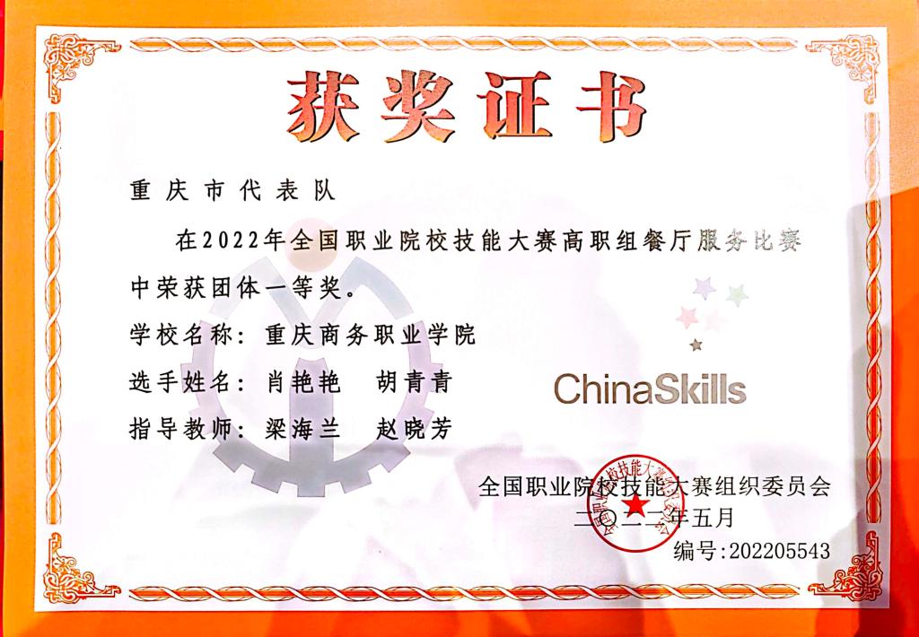 8月31日,2022年全国职业院校技能大赛高职组各赛项已经落下帷幕,学校代表重庆市高职院校出征智慧物流作业方案设计与实施、烹饪、银行业务综合技能、会计技能、餐厅服务五个赛项,与全国职业院校选手同台竞技,经过激烈角逐,最终喜获一等奖2个、二等奖2个、三等奖1个的好成绩,实现了荣获国赛一等奖的历史新突破,实现了国赛获奖数量新突破,实现了国赛一、二等奖获奖率创新高的质量新突破,取得了我校学生技能竞赛国赛历史最好成绩。
