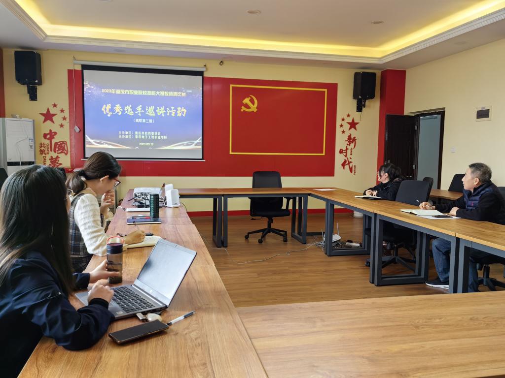 [文/图 教务处] 3月16日下午,由市教委主办的2023年重庆市职业院校技能大赛教师类比赛优秀选手巡讲活动在重庆电子工程职业学院举行,此次活动利用网络平台采用线上线下同时进行的方式进行,我校选派了十余位相关专业教师参加了此次巡讲活动,其他教师通过线上方式进行了学习。