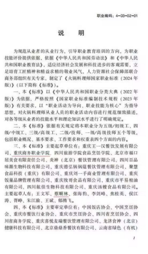 近日,人力资源和社会保障部办公厅、商务部办公厅联合颁布了中式烹调师(火锅料理师)国家职业标准,学校作为第二排名主要起草单位,烹饪学院、继续教育学院、渝菜烹饪研究院蔡顺林作为第二排名人参与本标准制定。这是学校首次参与国家职业标准制定,实现了在制定国家标准成果上的零突破。