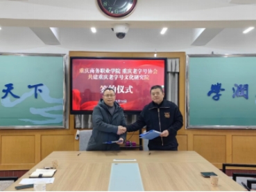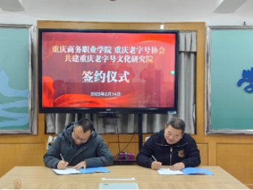 2月14日上午,学校与重庆老字号协会在南岸校区举行《共建重庆老字号文化研究院战略合作协议》签约仪式。继续教育学院院长蔡顺林,重庆老字号协会会长夏红亮、秘书长张祥高,以及双方相关工作人员出席签约仪式。