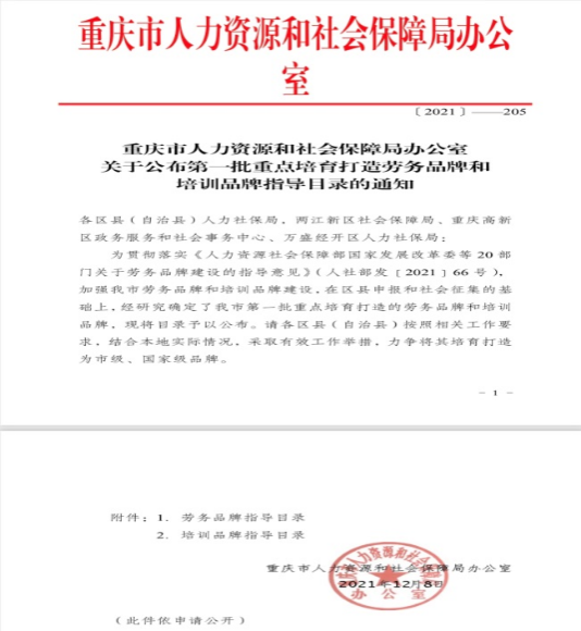 12月13日,重庆市人力资源和社会保障局公布了第一批重点培育打造劳务品牌和培训品牌指导目录。学校申报的“巴渝名厨”劳务品牌榜上有名。为了维护和打造好该市级品牌,南岸区人社局将采取有效工作举措将劳务品牌培训基地落户学校南岸校区,力争将其培育打造为市级、国家级品牌。