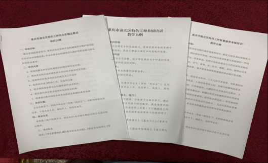 2021年以来,南岸校区科研管理部门以蔡顺林市级劳模创新大师工作室为平台,承接并完成了渝北区人社局农业机械运维人员、渝北乡厨、智慧康养三个特色工种培训大纲、考核规范、评价卷库的制定工作,并于2021年5月10日交付使用,得到重庆市渝北区人社局的肯定。