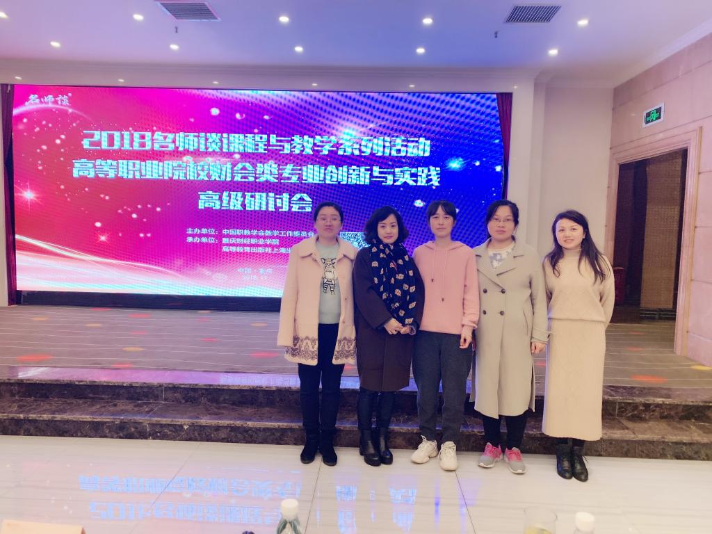 2018年11月30日至12月2日财经管理学院雷霞、韩芳艳、李文君、窦必凤和夏江英5位老师参加了由中国职业技术教育学会教学工作委员会在重庆举办的“名师谈课程与教学系列活动”之一的“2018年高等职业院校财会类专业创新与实践教学研讨会”。