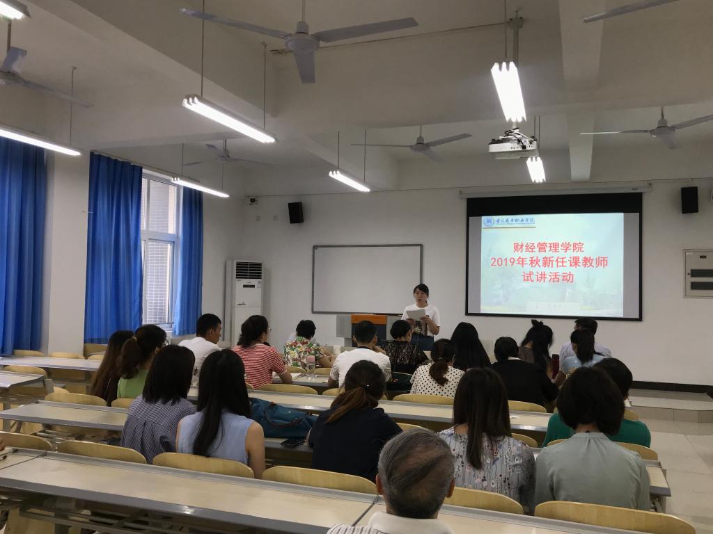 8月31日,财经管理学院在2403教室组织开展2019年秋新任课教师试讲活动,2019年新进专任教师和拟聘校外兼职教师共13名教师参加了试讲。学院领导、教研室主任、部分副高以上职称的教师担任专家评委。活动由教务办主任周碧主持。