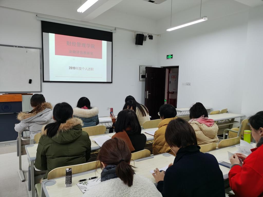12月20日,金融评估教研室在2304教室开展2019年度个人述职。教研室主任邓亚昊主持会议,传达了财经管理学院党政扩大会议精神和具体工作安排。