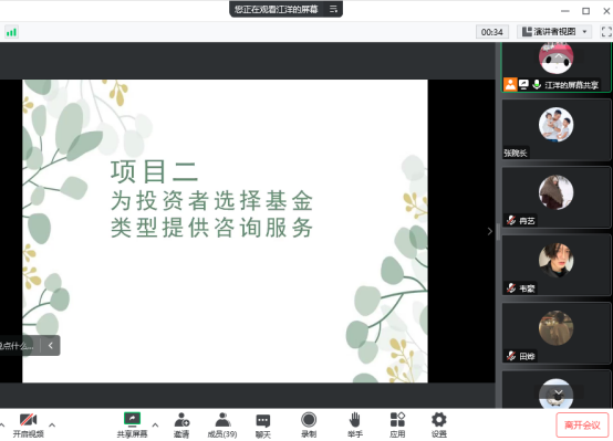 10月10日上午,江洋老师开讲《证券投资基金基础知识》“课程思政”公开课(腾讯课堂),副院长张建,苏玲娴、唐华、钱敏等教师代表参与线上听课。