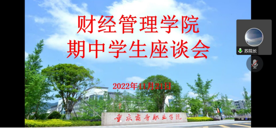 11月21日中午,学院召开了2022-2023学年第一学期期中学生座谈会(腾讯会议)。学院领导、教研室主任、辅导员、教务办、学团办以及39个班的学生代表参加了本次座谈。