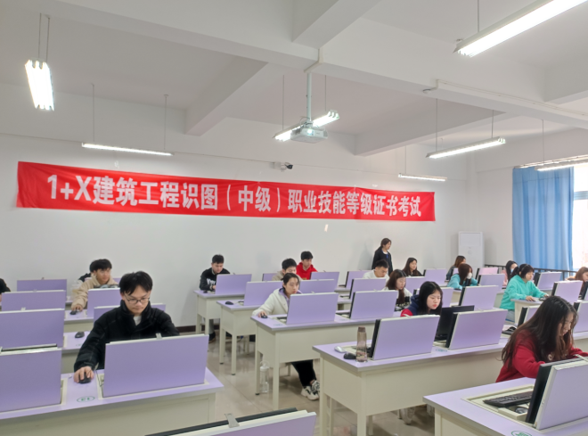 11月19日下午, 1+X建筑工程识图(中级)职业技能等级证书考试在实训楼3413、3415顺利举行,工程造价专业的50名学生参加了考试。