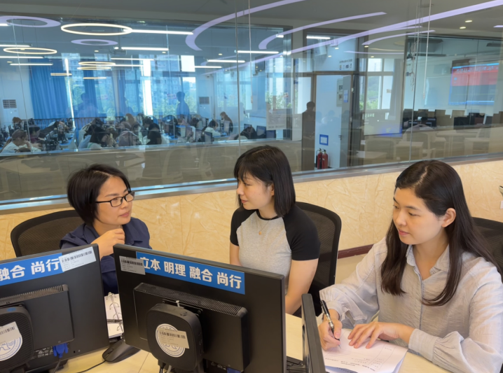 4月28日下午,建筑工程教研室张曦木老师在3411教室开讲《建筑制图CAD》“课程思政”公开课,专业建设委员会主任刘娜娜、教务办韩尹露到现场听课。