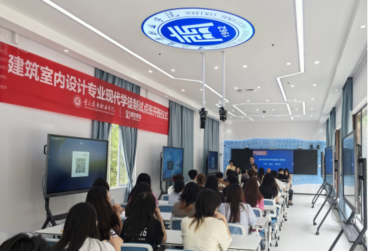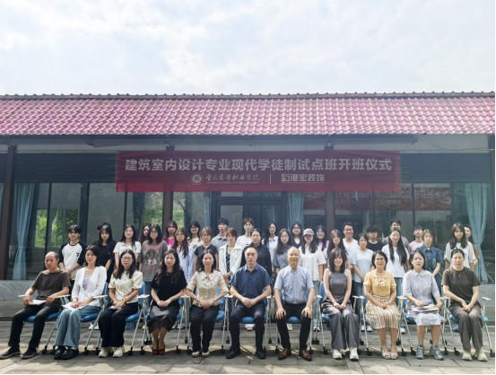 6月4日下午,建筑工程学院建筑室内设计专业在建筑专业综合实训基地多功能智慧教室举行第二届“党建共建暨现代学徒制试点班开班仪式”。学院诚邀校企合作单位重庆港宏装饰设计工程有限公司董事长郭斌、企业导师代表王萌莅临现场。建筑工程学院学院领导、全体教师、辅导员及本届试点班的30位学生参加了开班仪式,仪式由学院专业群负责人刘娜娜主持。