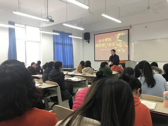 2018年3月4日下午14点30分,会计学院全体教师在1401教室召开了2017-2018学年第二学期期初部门会议。会议的主要内容如下: