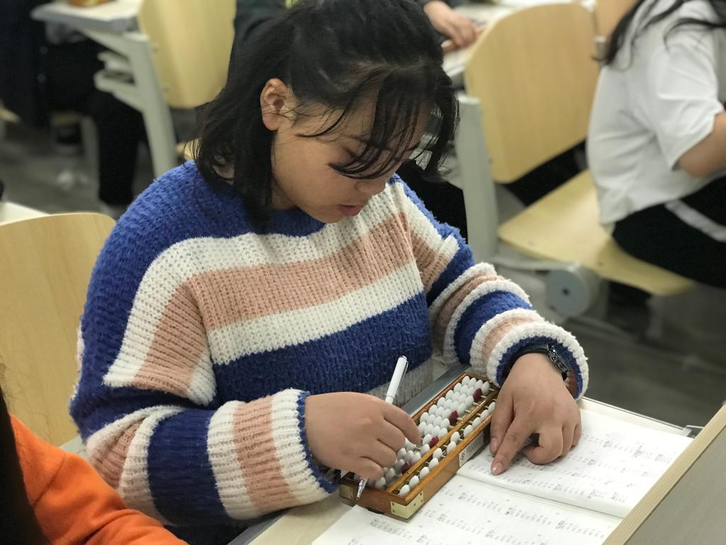 首先,任春华老师仔细的讲解了珠算的一些基本法则和注意事项,同学们个个全神贯注,认真的拨弄着算盘。随后,任春华老师随机抽选出算术题让大家操练,伴随着清脆的的算盘声,同学们用手中的算盘快速又准确的算出了一道道算术题,在活动中,让学生感受珠算这一中国传统文化的独特魅力。