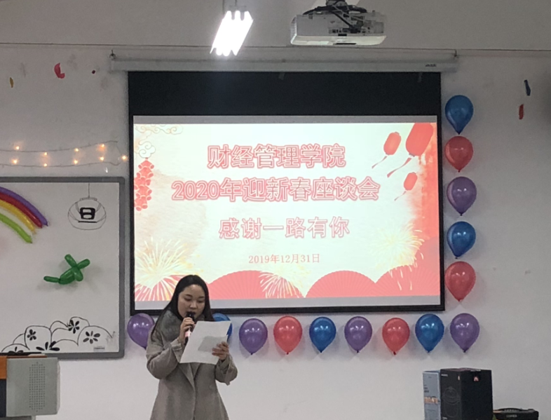 鼠年新春来临之际,财经管理学院12月31日中午在2404教室举行“展望2020”迎新春教师座谈会。全院教职工欢聚一堂,共话新春,共迎新年。