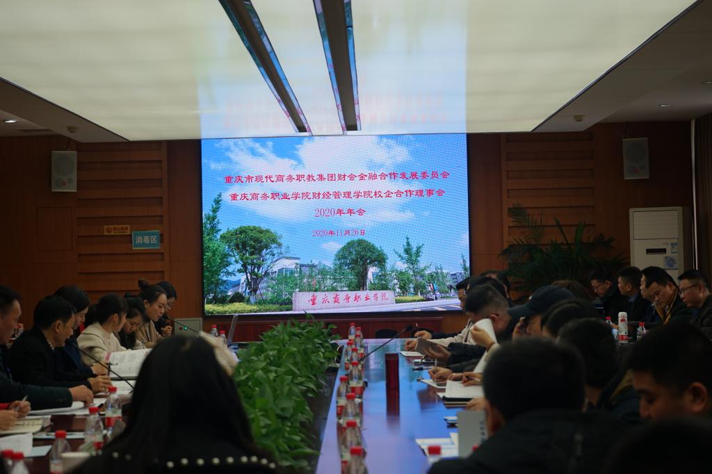 11月26日,财经管理学院在行政楼三会议室召开重庆市现代商务职教集团财会金融合作发展委员会暨重庆商务职业学院财经管理学院校企合作理事会2020年年会,来自重庆市内外的近30家企业应邀参加会议。学校副院长张荣、财经管理学院党政领导、教研室主任、专业负责人及骨干教师参加会议。