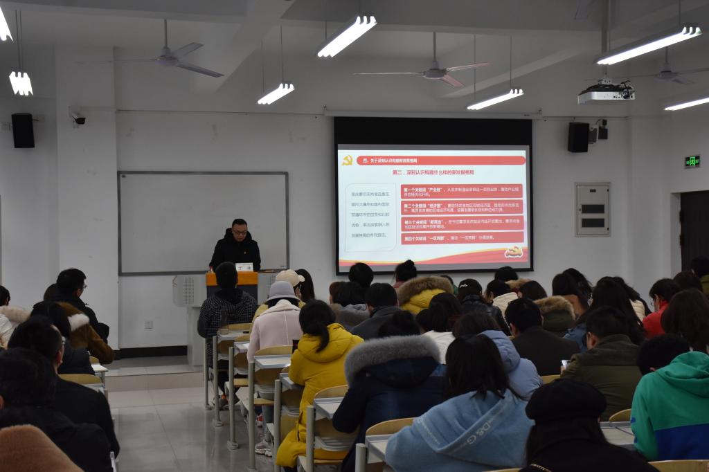 根据学校十九届五中全会精神宣讲团统一安排,2020年12月9日,宣讲团成员、副院长丁谦为财经管理学院全体教职工以及学生代表共120余人进行了专题宣讲,宣讲会由党总支书记黄琳娜主持。