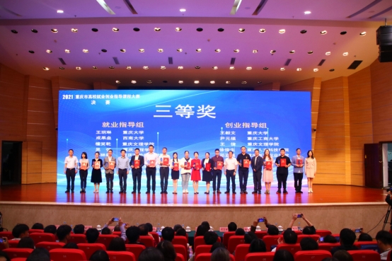 2021年10月10日,由市教委、市人力社保局联合主办的2021年重庆市高校就业创业指导课程大赛决赛暨大学生职业发展论坛在重庆师范大学举行。经过三轮比拼,56所高校评选出30位教师参加决赛,我院邓亚昊老师荣获重庆市三等奖。