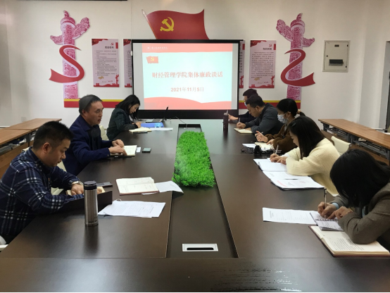 11月5日,财经管理学院党总支书记苏启立在2401开展廉政集体约谈,各党总支委员,下设党支部全体委员参加。
