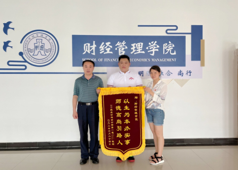 2019级统计与会计核算班石同学遇到了困难和挫折,学院帮助他克服困难,找到未来发展方向和目标,在老师的鼓励和关心下,该生走出了困境,树立了信心,刻苦学习,专升本成功上岸,即将进入本科学校继续学习深造。6月24日是毕业生离校的日子,该生为了感谢学院领导和老师的帮助,向学院赠送“以生为本办实事,师德高尚引路人”的锦旗。