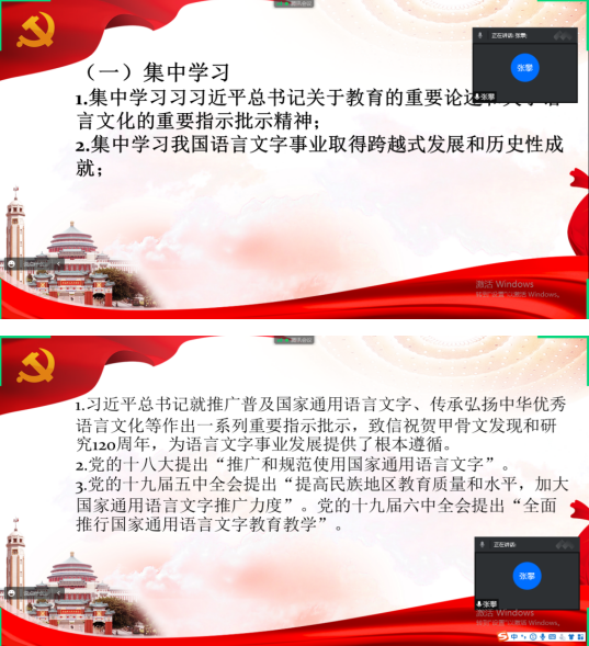 9月14日下午,学院党总支组织下设基层党支部围绕迎接宣传贯彻党的二十大精神开展了主题党日活动,各支部线上学习讨论了在以习近平同志为核心的党中央坚强领导下,语言文字工作取得的历史性成就、发生的历史性变革。全体党员教师纷纷表示,要发挥教师优势,充分在课堂和校园营造良好氛围,为我国语言文字事业高质量发展,为加快推进教育现代化、建设教育强国、办好人民满意的教育做出应有的贡献。