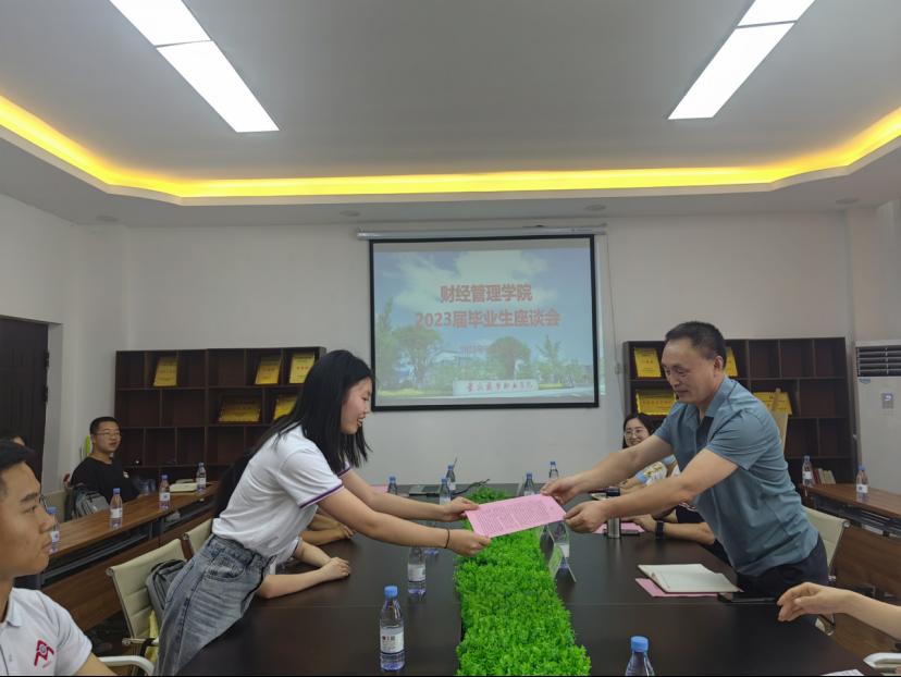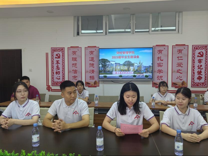 6月26日,财经管理学院举行2023届毕业生座谈会,副校长丁谦、学院党政班子成员、教师代表和毕业生代表参加座谈。座谈会由学院党总支副书记阳春艳主持。