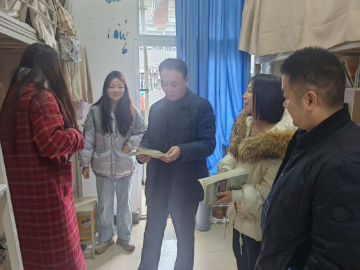 三、鼓足干劲起好步。学院始终坚持围绕学生,做好做实双进,开学伊始,全体学院领导带领全体辅导员深入寝室,了解学生思想、生活、身体、情感、人际交往、家庭等状况;了解学生返校后的思想动态,查看寝室饮用水改造等情况,鼓励学生新学期要树立新目标,希望同学们新阶段开启新征程。