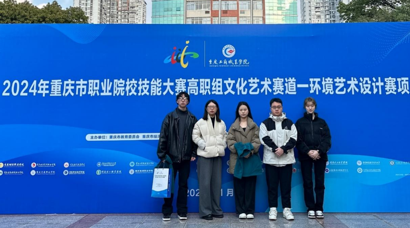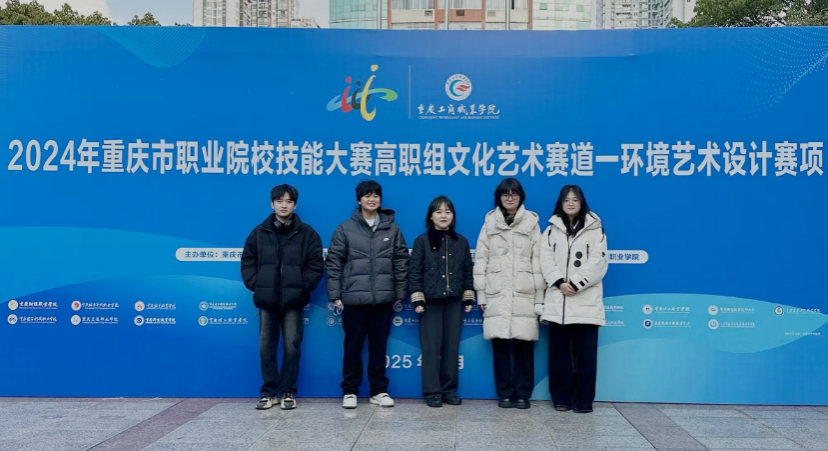 2025年1月12日,重庆市职业院校技能大赛高职组“环境艺术设计赛项”落下帷幕。由建筑工程学院李琴、王雯老师指导,夏雨欣、龙江、李萍萍、彭星语4名同学组成的参赛队获得银奖;建筑工程学院姚睿娟、刘爱伟老师指导,郭晨曦、傅鸿、刘建成、张昊雯4名同学组成的参赛队获得铜奖。