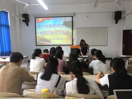 5月9日下午2:30,会计学院教师党支部在1401教室开展5月主题党日活动,支部全体党员参加,组织委员耿文俊主持活动。