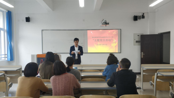 2018年10月10日下午16:00,财经管理学院金融教研室党支部在2406教室开展10月主题党日活动,支部全体党员参加,支部书记张攀主持活动。