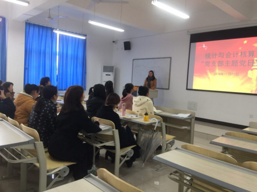2018年11月21日下午,财经管理学院统计与会计核算教研室党支部在2403教室开展主题党日活动——“以案说纪、以案说法、以案说德、议案说责”警示教育,支部书记唐华主持活动,支部党员全员参与。