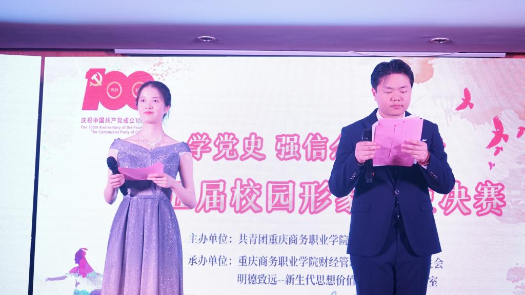2021年5月20日,财经管理学院承办的重庆商务职业学院第五届“学党史 强信念 跟党走”校园形象大使决赛在学生活动中心隆重拉开帷幕,校团委书记、学生工作部副部长邓健、财经管理学院党总支副书记阳春艳、各院系团总支书记、团总支副书记、心理工作站负责人出席决赛现场,校党委宣传部贺睿、校组织人事处张军、校学生工作部李律、马克思主义学院徐春杰、曾进雯担任本次比赛的评委。