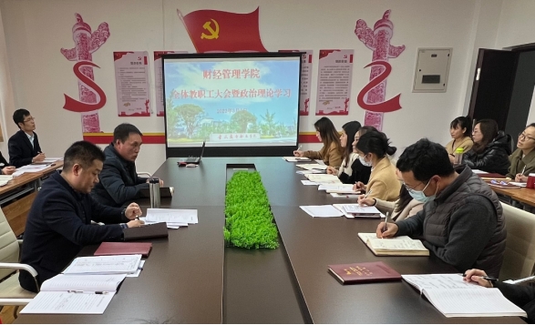2022年3月2日,财经管理学院组织全体教职工集中开展政治理论学习教育。