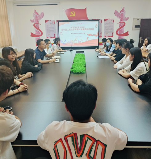 学生党支部书记张秀琼表示,习近平总书记一直十分重视青年工作、关心青年成长。党的十八大以来,习近平总书记多次不同形式寄语广大青年,在今年五四青年节即将到来之际,总书记再次寄语青年,体现了党中央对青年的关怀和对青年工作的重视,作为一名高校的基层党务工作者、青年工作者,我备受鼓舞。疫情期间,学院广大青年闻令而动、积极作为,日夜值守在疫情防控一线,把疫情防控作为一堂“大思政课”。接下来,学生党支部将认真组织学习总书记的重要讲话,教育引导广大青年坚定不移听党话,矢志不渝跟党走,在青春实践中争做堪当民族复兴重任的时代新人。