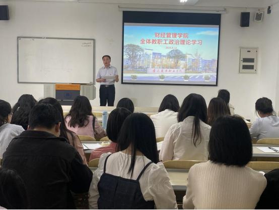 4月12日,财经管理学院在2403教室组织全体教职工开展了四月政治理论集中学习活动。
