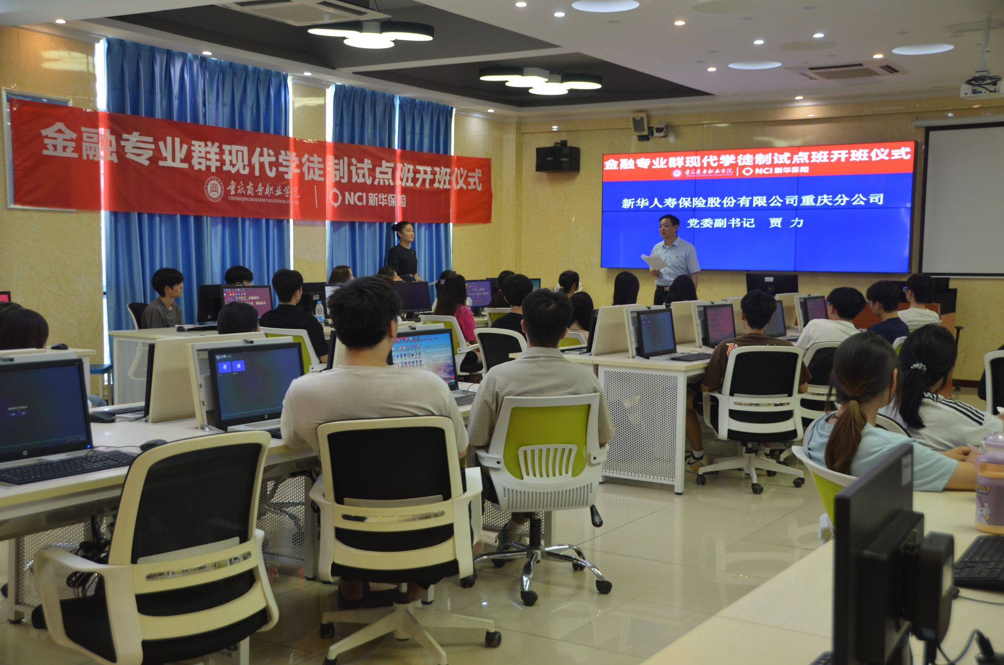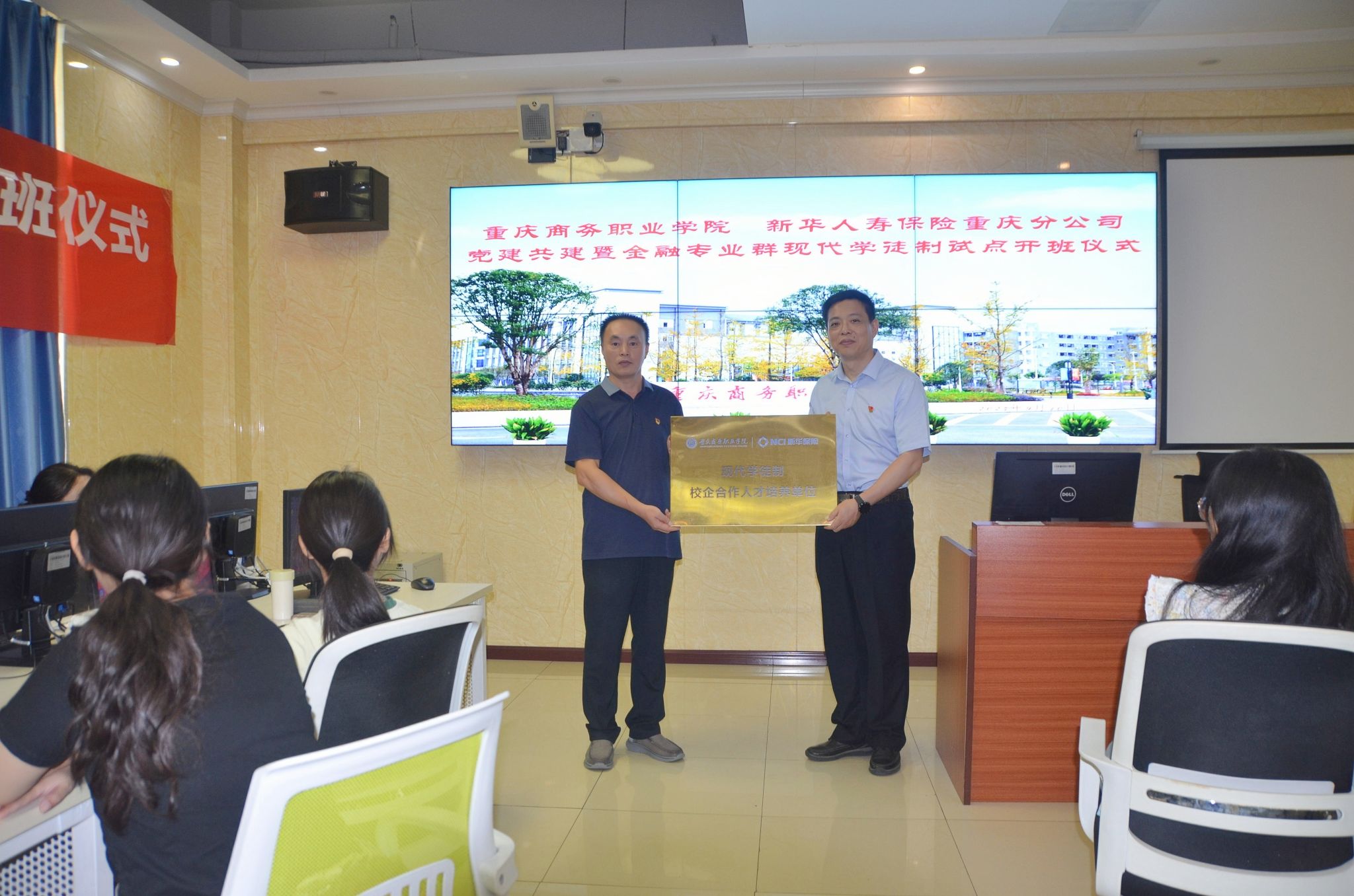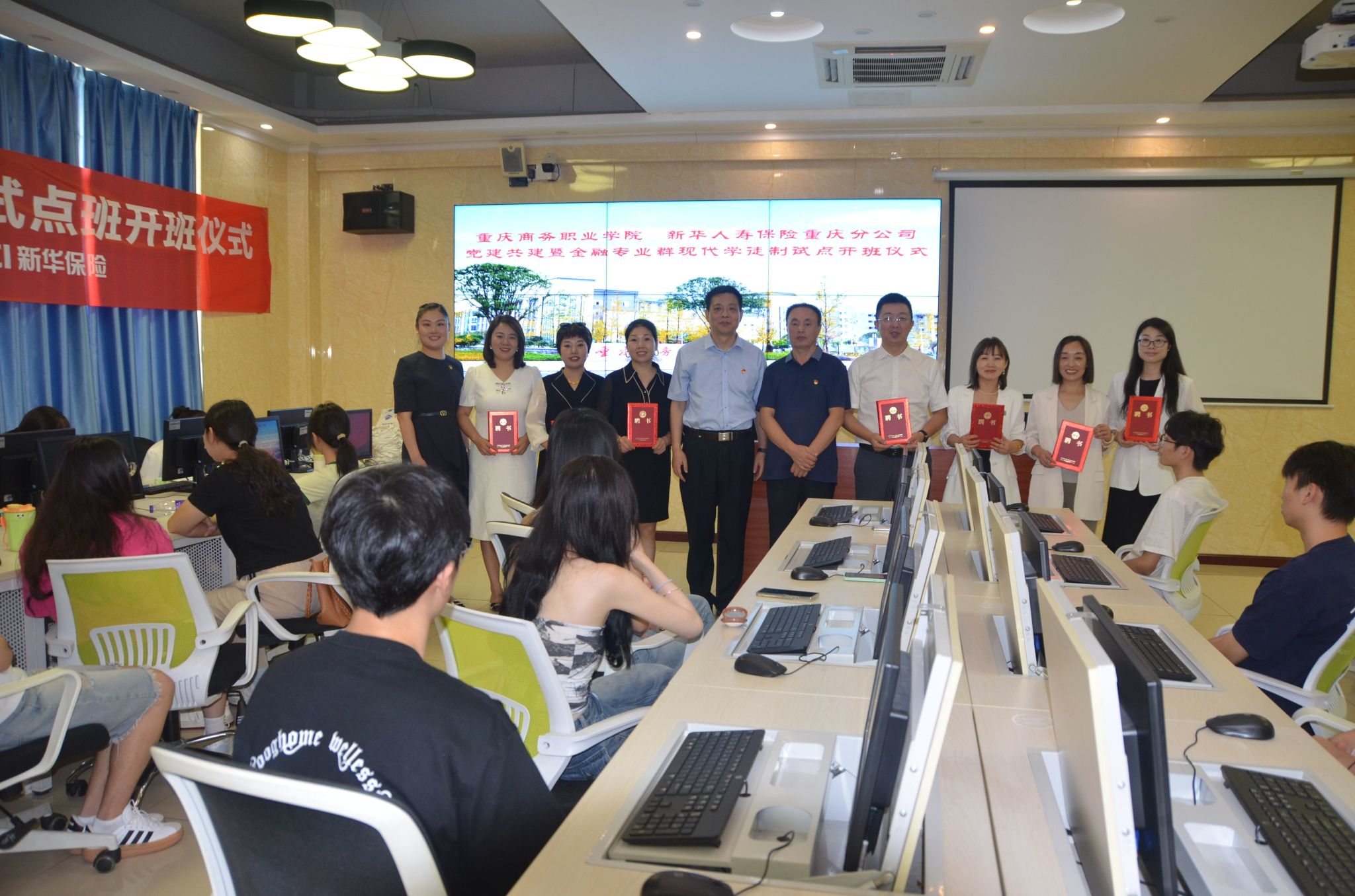 9月10日上午,学院金融专业在实训楼3409教室举行“党建共建暨现代学徒制试点班开班仪式”活动。学校党委委员、副校长贾小波,新华保险重庆分公司党委副书记、副总经理贾力及公司培训部、优增项目负责人、大学生实习计划项目负责人、公司营销党支部书记等一行7人,财经大数据教研室党支部书记唐华、金融科技应用专业带头人谢沂芹及现代学徒制试点班全体学员等参加了活动。开班仪式由学院党总支书记、院长苏启立主持。