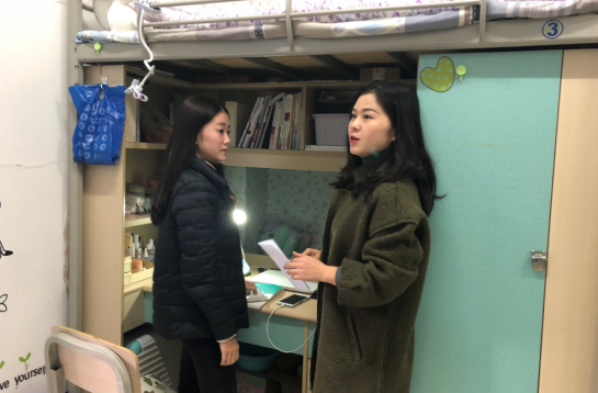 首先,重点检查了A、C、D、E、F号宿舍楼600余间宿舍,检查小组分别对学生宿舍的地面、床铺、衣橱、玻璃、阳台、卫生间、物品摆放等各个方面进行了严格细致的检查。其次,对使用大功率电器、违规违禁物品等安全隐患进行排查。检查过程中大部分寝室的安全卫生都做得很好,也发现个别宿舍卫生情况不理想,有使用多个烧水壶、电饭锅等大功率电器现象,存在安全隐患,在检查人员的耐心指导下,同学们表示会按要求进行整改。