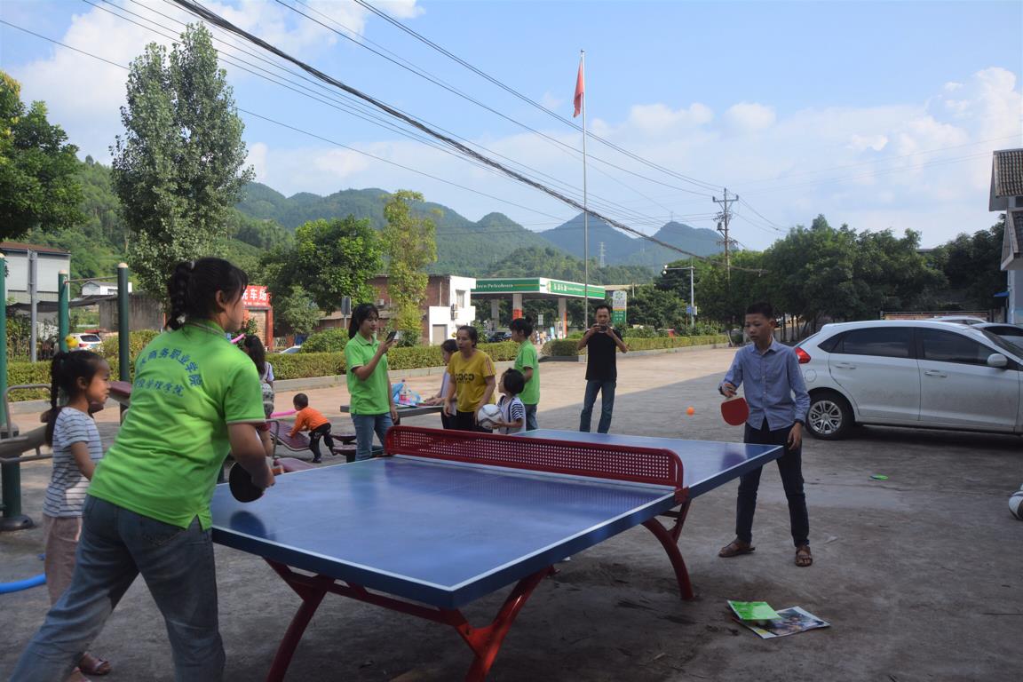 在实践期间,关爱团在马家桥社区服务中心的帮助下召集到了村里的20多名小朋友们。首先,由徐鹏老师向小朋友们及同行家长进行自我介绍与此次社会实践目的,并与孩子们进行了亲切友好的交流。随后,由李诗语组织展开第一个环节:“美丽家园”绘画活动,志愿者们与小朋友一起绘出心中的家园,充分调动小朋友们的积极性与动手能力,现场气氛其乐融融。第二个环节组织了击鼓传花、有奖问答等小游戏,小朋友在感受欢乐的同时,也进行了文化教育,走进儿童心灵,让爱心与责任接力,让快乐教育在山村起航。第三个环节,小朋友们带来了唱歌、背诵诗歌、讲笑话、民族舞蹈等才艺展示,给关爱团带来了一场视觉盛宴,也得到了同行家长的赞美。最后,志愿者将书包、文具、足球等物品送到了小朋友的手中,并与参与的孩子一起踢足球、打乒乓球、打羽毛球等体育活动,提高了小朋友们的竞争意识、团结协作等综合素质。