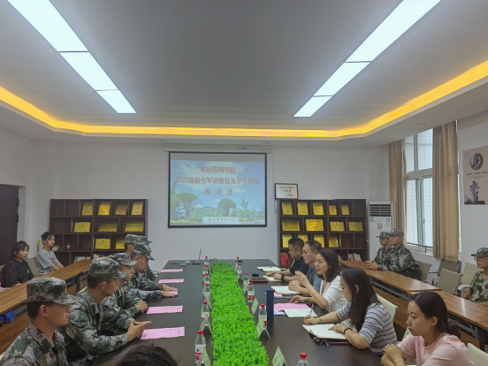 9月22日,学院召开新生军训教官及新生代表座谈会,学院领导、全体军训教官、新生辅导员和学生代表参加,会议由党总支副书记阳春艳主持。