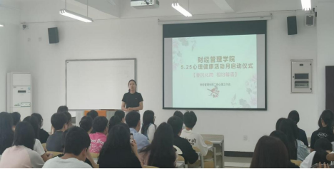 2024年5月7日,财经管理学院在2403顺利举行5•25心理健康活动月启动仪式,学院党总支副书记阳春艳,全体专兼职辅导员,各班级班长、心理委员共计百余人参加,仪式由财经馨语心理工作站站长胥柳主持。