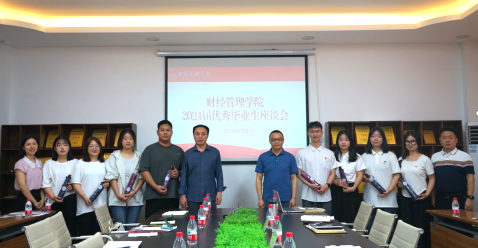 6月26日,财经管理学院在2401举行2024届毕业生代表座谈会,学院党政班子成员、教师和毕业生代表参加,副校长丁谦出席并讲话,座谈会由党总支副书记阳春艳主持。