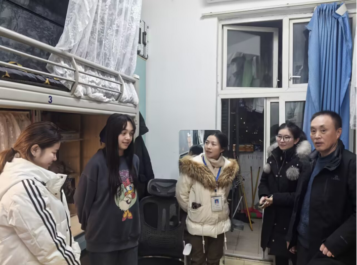 1231日,学院领导带队深入寝室开展安全检查,重点查看学生寝室有无违规使用大功率电器、私拉乱接电线等,提醒同学们根据天气情况及时加衣防寒,注意食品安全,增强电信反诈意识,牢固树立生命至上,安全第一的意识;同时详细了解学生近期的学习情况,提醒同学们安排好作息时间,做好期末复习。