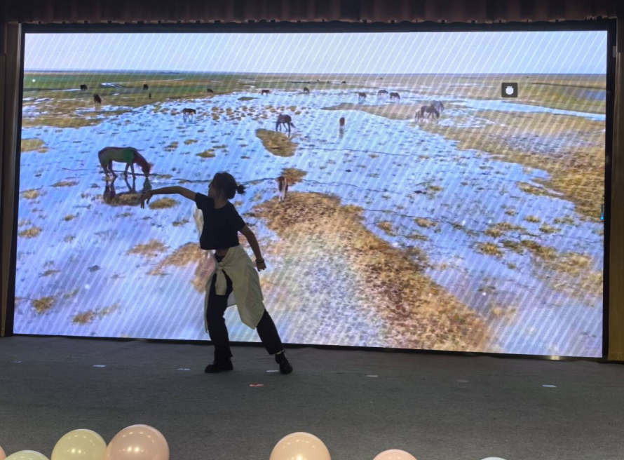 2023级、2024级、2025级新生联袂演出,共同奉献了精彩纷呈的歌舞表演,忽而今夏的歌声甜美动人,海阔天空的呐喊是对自由和理想的向往,蒙古族同学让现代舞和蒙古舞的融合赢得现场阵阵呐喊和欢呼,仿佛置身呼伦贝尔大草原,至少还有你的温情,是同学情谊的真切表达,展现了当代大学生热情洋溢的精神风貌。