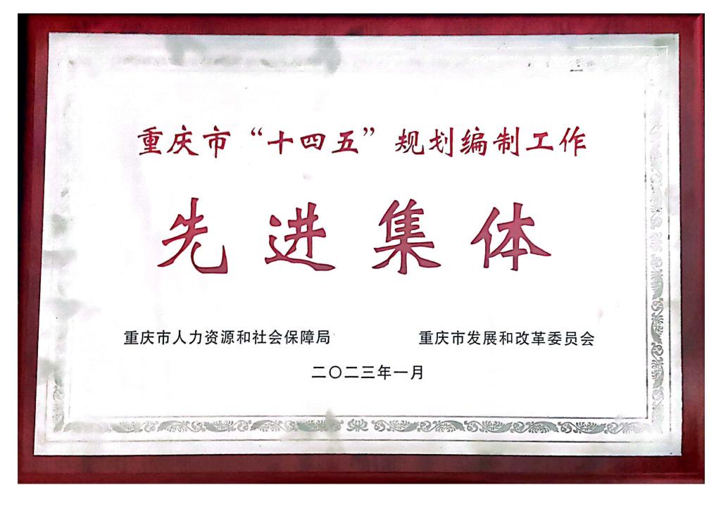 此次评奖由重庆市发展改革委、市人力社保局组织,共评选出50个先进集体,全市学校发展规划部门获此殊荣的仅3所:重庆商务职院科研处(发展规划处)、重庆文艺职院文化和旅游职业教育研究中心、重庆市工业高级技工学校(重庆市工业技师学院)。学校在“十四五”规划研究和编制工作中,在问题研究、规划起草、报批发布、宣传解读等方面发挥了骨干作用,圆满完成“十四五”规划编制任务。