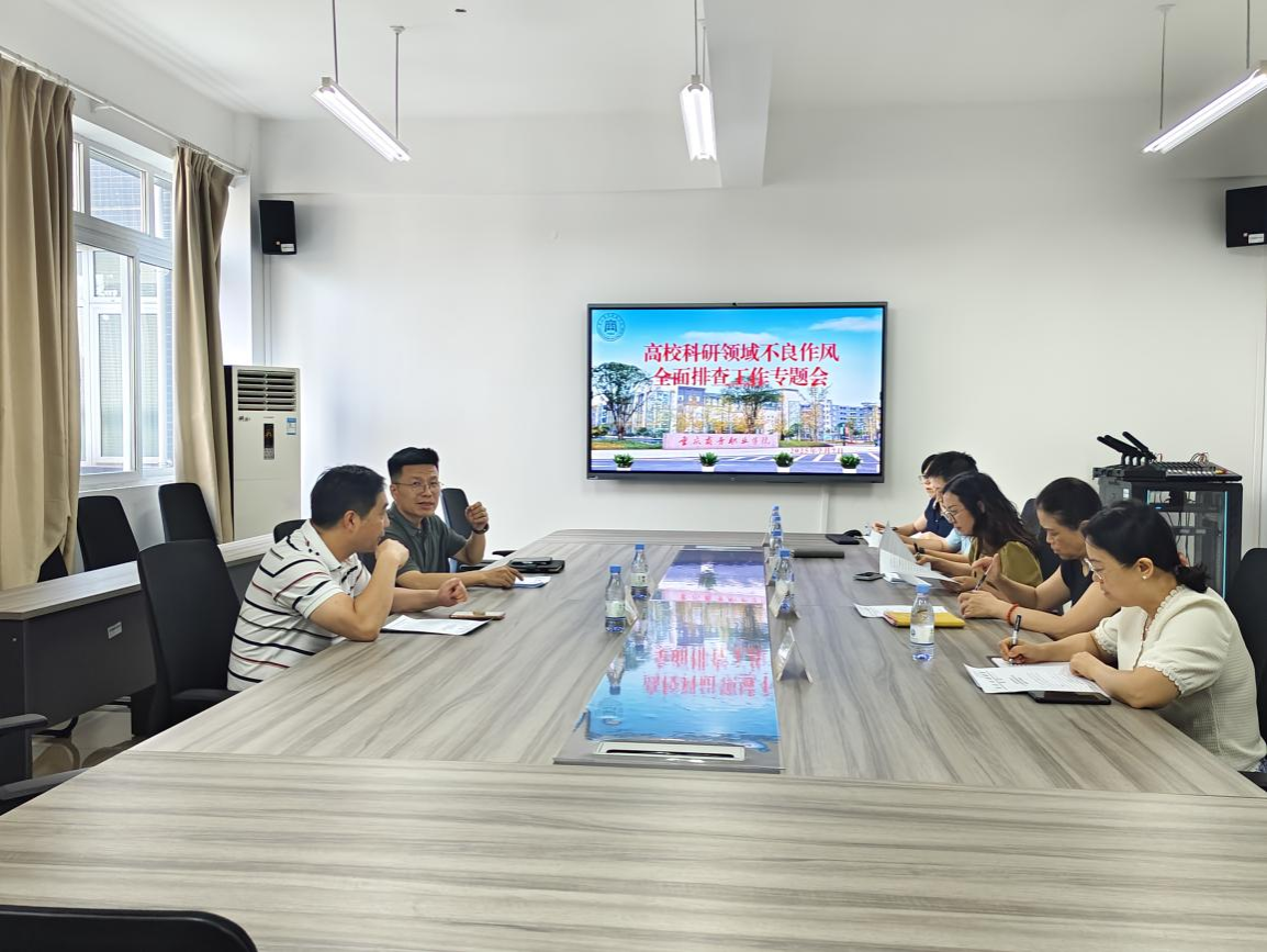 会上,赵连明重点传达《重庆市教育委员会关于开展高校科研领域不良作风全面排查工作的通知》(渝教科函〔2025〕28号)精神,部署自查阶段工作任务。详细解读了文件内容,强调本次排查三大核心领域:一是科研诚信体系建设:检查党政主要负责人第一责任人制度、学术不端查处机制、破除“四唯”落实情况;二是师生科研失信行为:全面筛查论文抄袭、数据造假、代写代投、成果署名不当等9类行为;三是科研诚信与科技伦理教育:核查教育内容纳入人才培养方案、关键节点专项教育活动开展情况等。随后,会议经过讨论,明确了各部门职责,各部门根据自己的职能职责对科研诚信建设和学术不端行为进行排查和资料整理工作。
