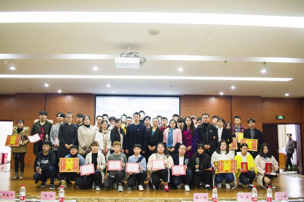 第四届“迎新杯”球类竞技赛闭幕式暨颁奖典礼于2018年11月12日中午在学生活动中心320举行。团委书记、学工部副部长邓健、团委副书记陈小容、出版传媒系团学办副主任向征、餐饮旅游学院团学办副主任汪小瑜、财经管理学院学团办干事周春梦、商贸管理系学团办干事谢蓉、全体团委老师以及300余名学生出席了活动。