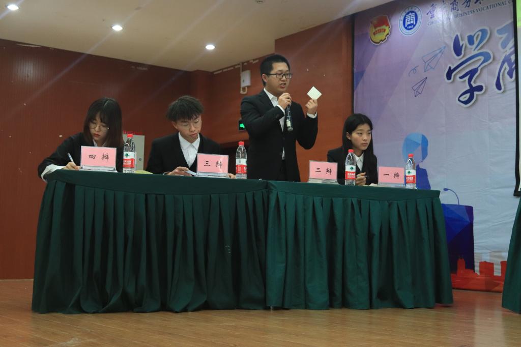 经过院系初赛、学校复赛,共有4支队伍挺进决赛。商贸管理系和餐饮旅游学院代表队作为此次决赛的正反双方,在比赛过程中围绕“高质量生活更重要还是高质量发展更重要”展开了激烈冠亚军争夺赛;财经管理学院和出版传媒系就“喷喷群和夸夸群哪个更好”展开了季军争夺赛。