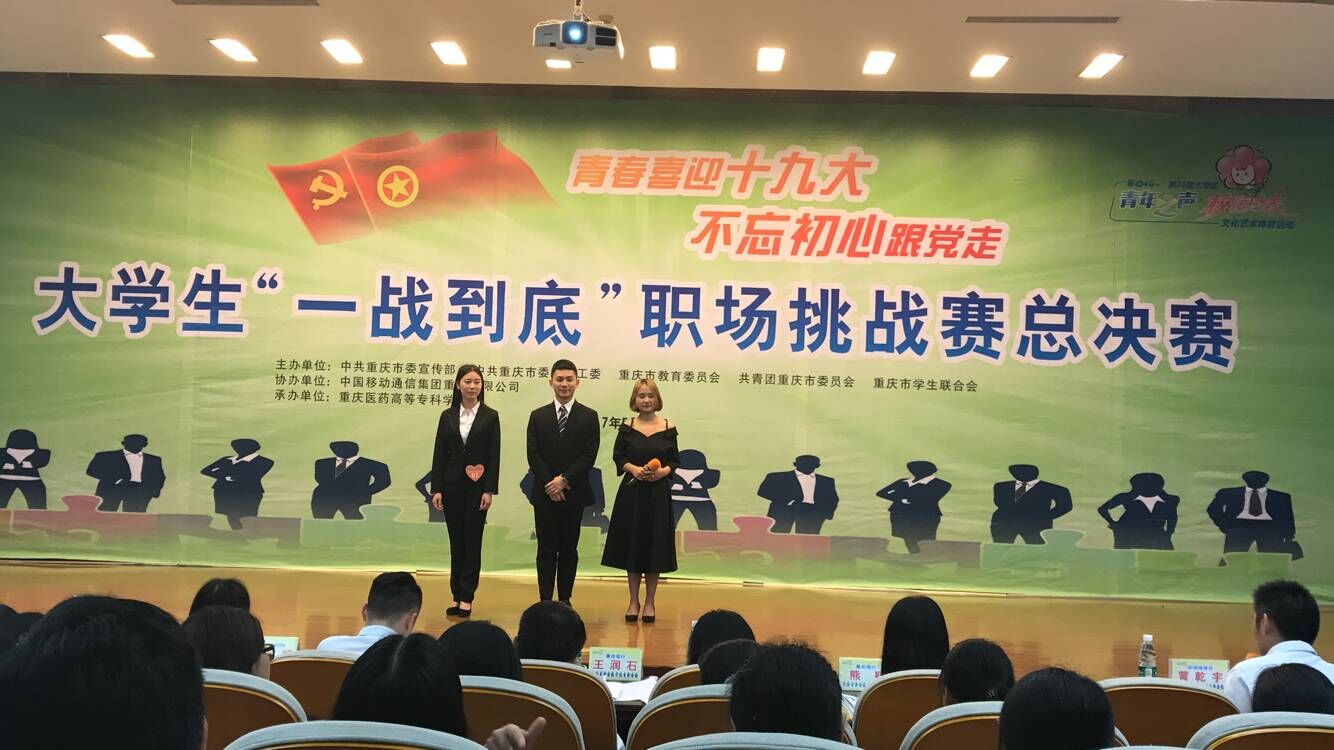 本次“一战到底”职场挑战赛活动以实际岗位为依托,吸引了来自全市高校1356名大学生踊跃报名,经过层层选拔,14名选手闯入决赛。决赛共设置了“职场初印象”“职场零距离”“职场再考评”“职场终选择”4个环节,最终获胜者将赢得重庆银行、大龙网(中国)集团有限公司、电讯盈科—香港电讯等用人单位的实习offer。我校张渝同学凭借良好的综合素质,精神饱满、沉着冷静,面对用人单位的犀利提问从容应对,精彩表现获得评委的一致好评,最后成功赢得了“实习直通车邀请卡”。