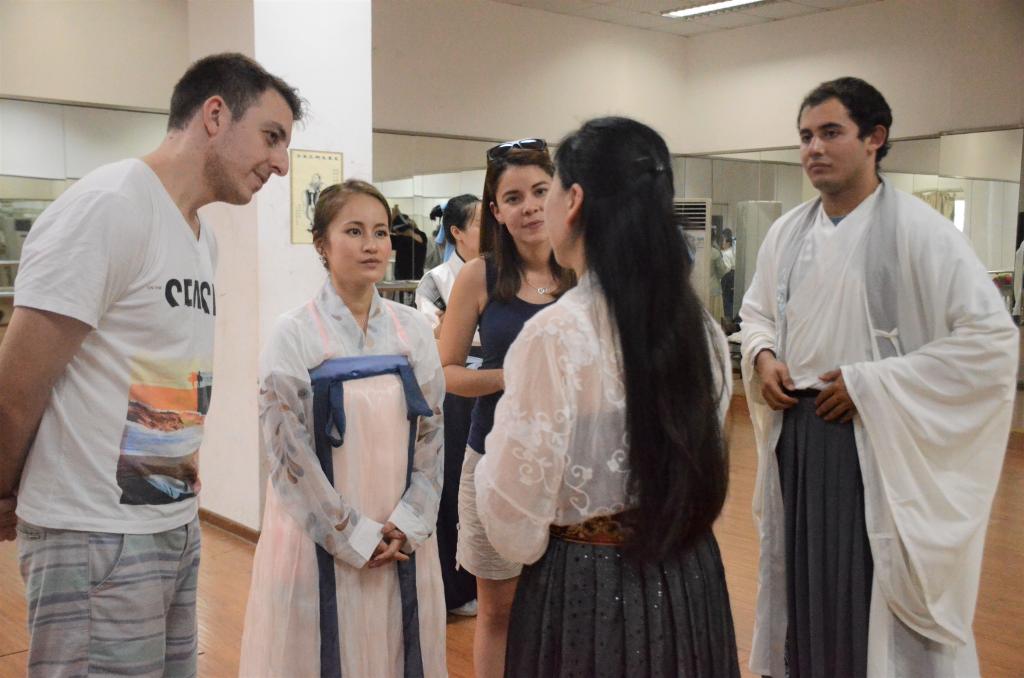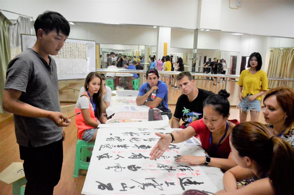 澳洲来华短期进修团的7名学生是分别来自澳大利亚、智利、捷克、巴西、柬埔寨、日本和尼日利亚七个国家。校团委为他们提供了一对一的志愿服务和社团活动展示。6个国学社团为进修团提供了内容丰富、形式多样的民俗文化表演课、汉语知识课、书法体验课,充分展现出中国传统文化的独特魅力。为促进跨文化交流,澳洲来华短期进修团与我校兵乓球协会、飞盘协会的同学进行了乒乓球、飞盘等体育项目的切磋。同时,商贸管理系、餐饮旅游学院还为他们开展了最具特色的工作坊交流会、电商物流课题体验、餐饮课堂体验、茶艺体验等活动。