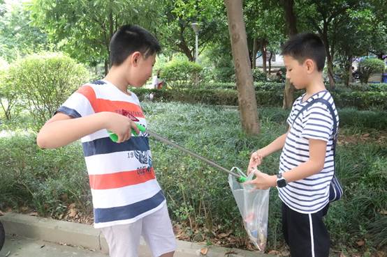 “绿色守望”实践团的志愿者为社区小朋友精心制作了环保宣讲幻灯片,通过小组知识竞赛、“我是小老师”等形式开展环保知识宣讲。为强化小朋友的动手能力和环保意识,志愿者与小朋友组成了“大手牵小手”环保行动我先行的街道清扫、小区清洁和垃圾分类、环保手工小课堂等活动。活动过程中,小朋友体验到了环卫工人为了干净整洁的环境在酷暑下劳动的艰辛。为此,志愿者与小朋友一起实施了“秘密计划”——环卫工人“最美变身”,通过化妆、装扮等帮助环卫工人展现独特的魅力,小朋友纷纷称赞他们是“美丽城市的化妆师”。