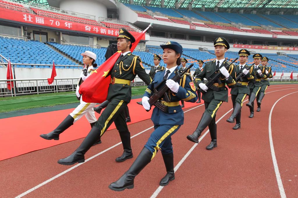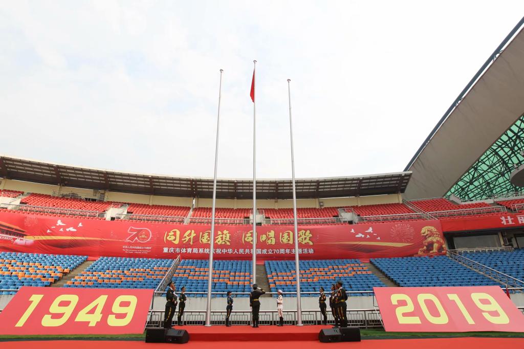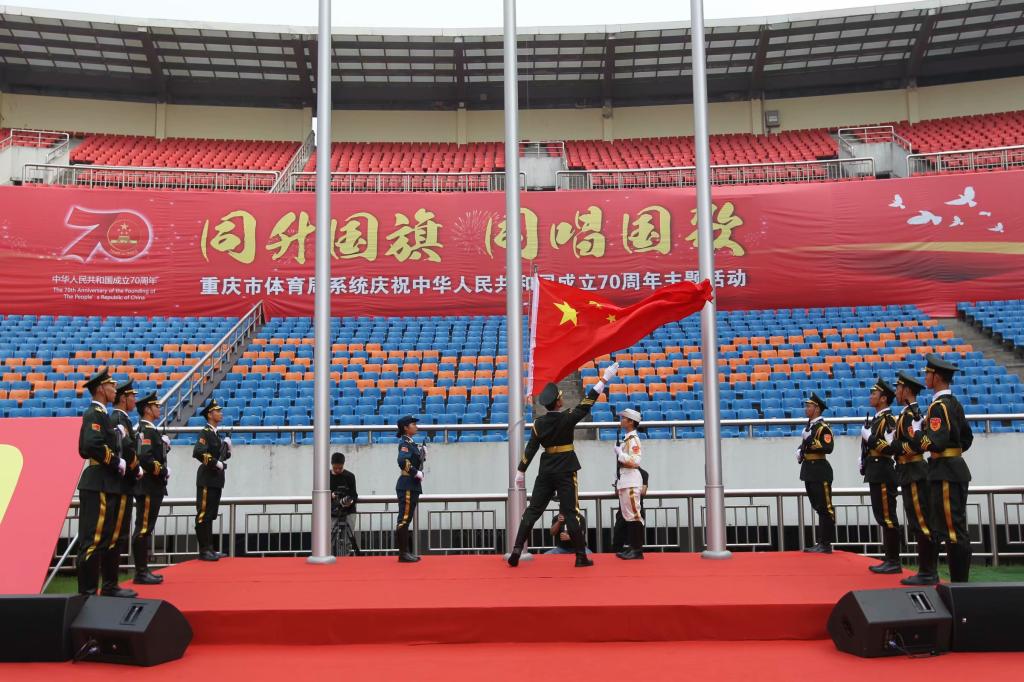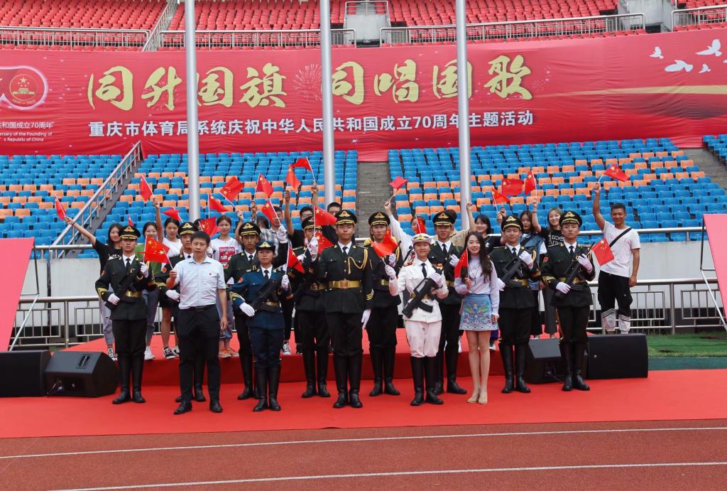 2019年9月30日上午,我校国旗队受邀参加重庆市体育局庆祝新中国成立70周年“同升国旗,同唱国歌”主题活动,在重庆奥体中心升起鲜艳的五星红旗。这是我校国旗队自建立以来首次受邀外出参加大型活动,获得市体育局的一致好评。